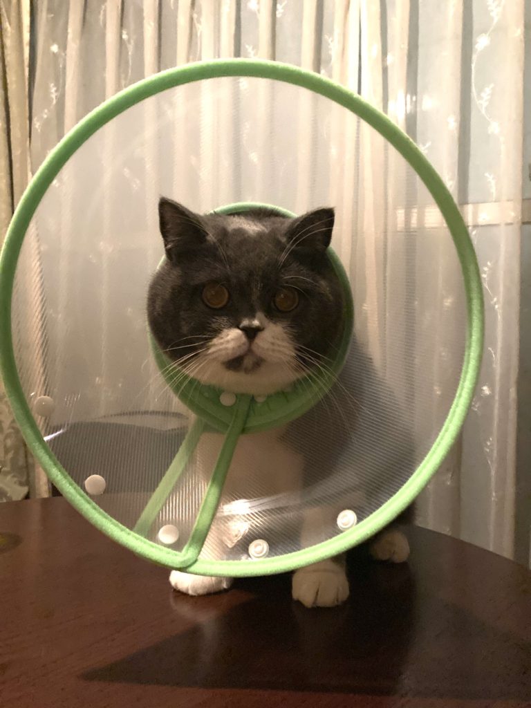 あごにきびが出たので、ちょっとだけ犬用のエリザベスカラーにて。。