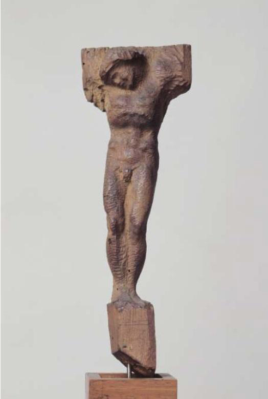 私的にはこの作品に愛着を感じた。今までの作品を見ると人物の形を完全に作り上げルネッサンス期独特の美を表現していたが、この作品は木彫のノミ痕を風合い良く残し、その元である木と人間像を一体化させ作り上げている。