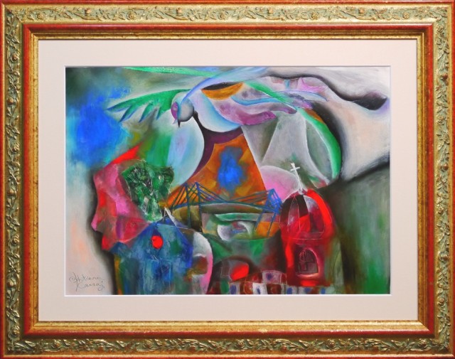 水彩紙に油彩